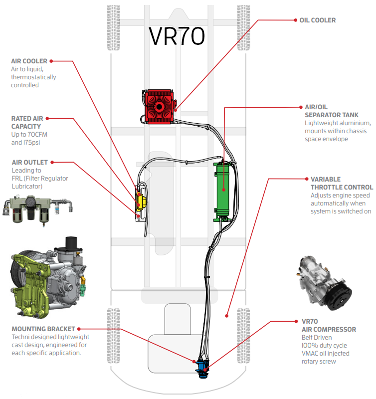 We provide a choice of three different compressed air systems – the VR40, VR40C and VR70. Have a read about each of them and the vehicles for which they’re compatible with HERE.