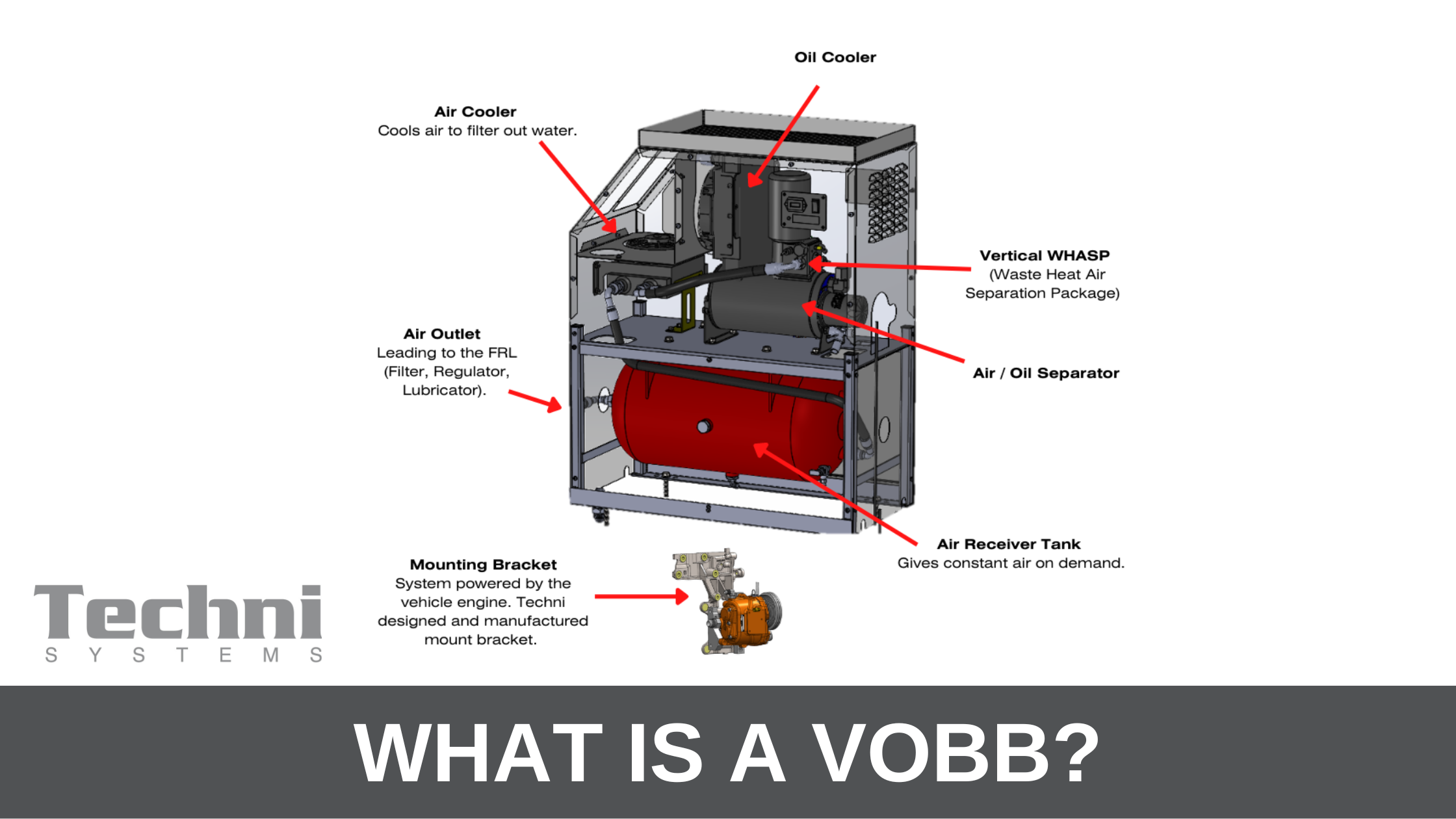 With our VR40 Engine Mounted Compressed Air System we also offer the option of VOBB. Our VOBB sits within the load area bringing most of the system components into the vehicle load area.