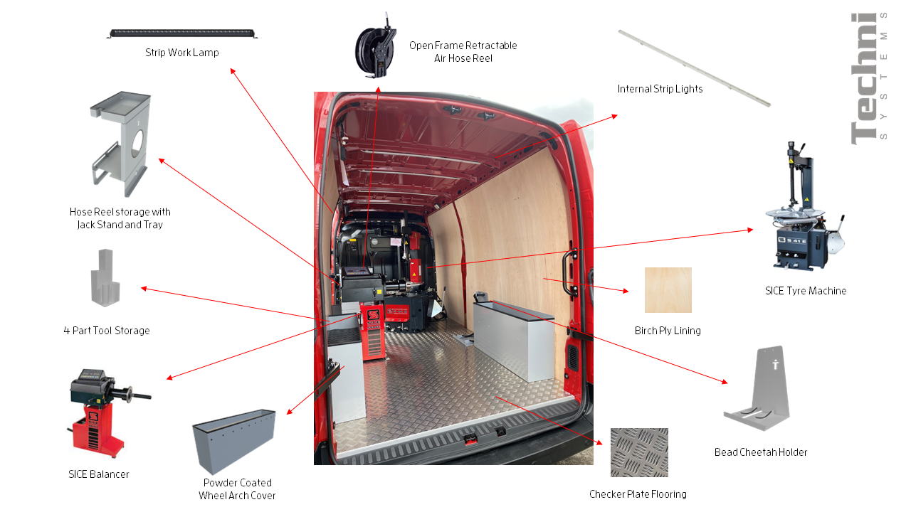 Along with the installation of our VR40 engine mounted compressed air system we also fully converted 4 vans – 2 for use as car mobile tyre vans and 2 for truck tyre mobile vans.