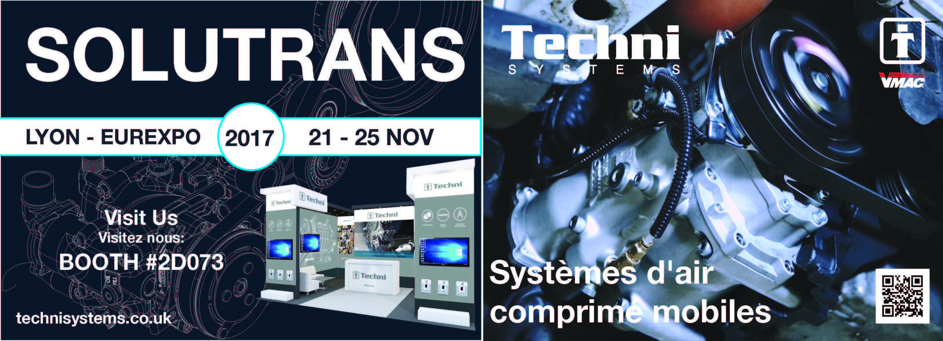 The Techni Systems team have arrived at Eurexpo’s Solutrans to showcase the launch of our new mobile air-compressed air systems. Suitable for mobile tyre changing, mobile service and utility vehicles. Please stop by our stand in Hall 2 D073 for further information.